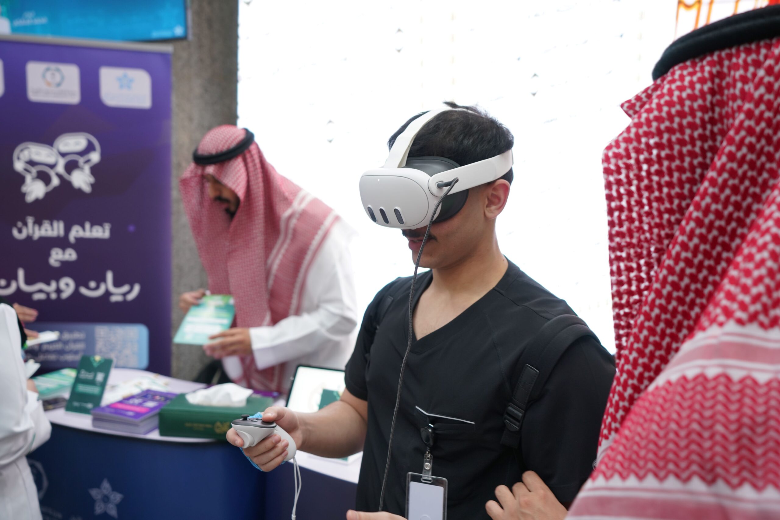 وركز الجناح على عرض مجموعة من التطبيقات التقنية القرآنية التي تُسهم بشكل مباشر في دعم الصحة النفسية والمعنوية، لتكون عونًا للمرضى وذويهم والعاملين في القطاع الصحي. وشملت التطبيقات المعروضة: “تطبيق القرآن مباشر” المخصص لتصحيح التلاوة، وتطبيق “ريان وبيان” المتخصص في تعليم القرآن الكريم للأطفال، بالإضافة إلى تجربة مبتكرة باستخدام تطبيق “القرآن الكريم” عبر النظارات الافتراضية، مما أتاح للزوار تجربة فريدة للتفاعل مع تلاوة القرآن الكريم بتقنية حديثة.